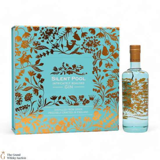 Silent Pool Intricately Realised Gin is a premium gin known for its complex and rich profile, produced in Surrey Hills, England. It is distilled from grain with a blend of 24 botanicals, including traditional juniper, along with more exotic ingredients like kaffir lime, chamomile, and lavender.