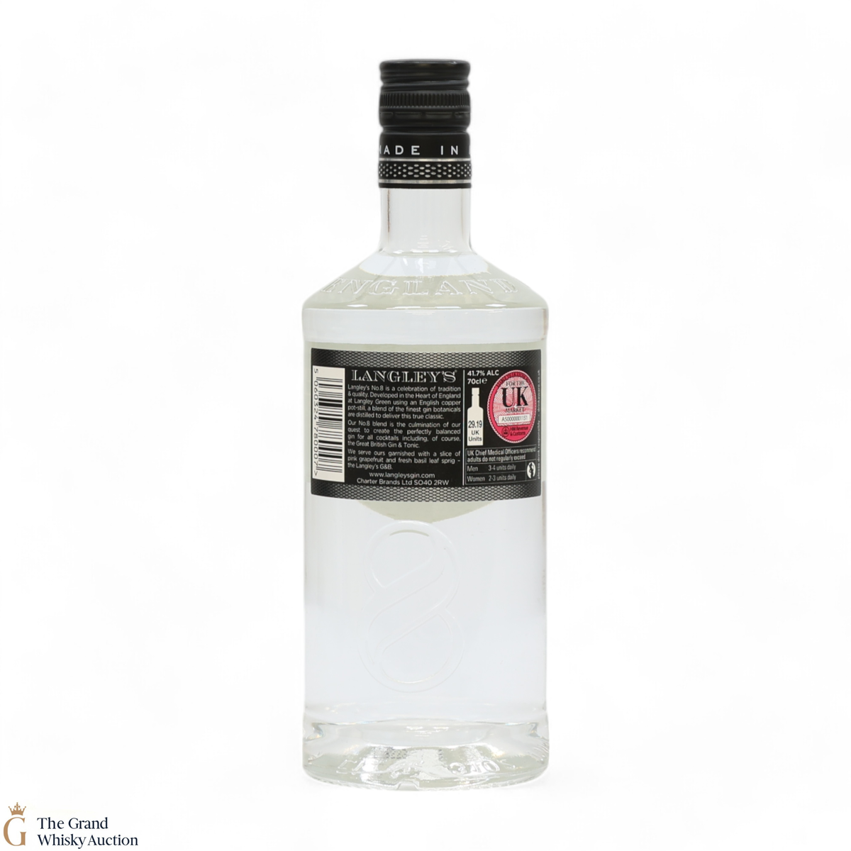 Langley's No.8 Small Batch London Dry Gin The gin is distilled using a selection of high-quality botanicals, including juniper berries, coriander, angelica root, and others.