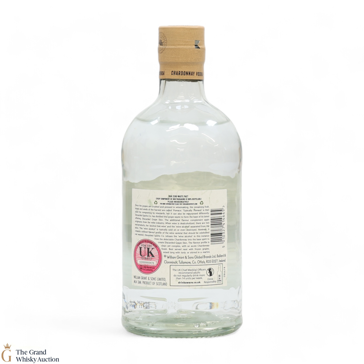 Discarded - Grape Skin - Chardonnay Vodka is a product by Discarded Spirits Co. This vodka is crafted from Chardonnay grape skins that are a by-product of winemaking. Instead of letting these skins go to waste, Discarded Spirits Co. repurposes them into a distinctive vodka.