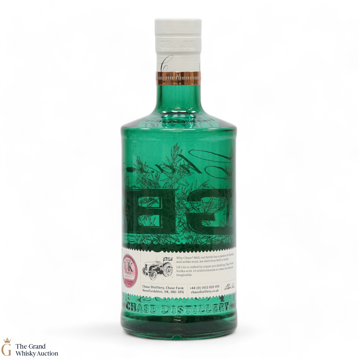 Chase Extra Dry GB Gin is a premium full-bodied handcraft gin produced by Chase Distillery in Herefordshire, England, distilled using a copper pot featuring a blend of botanicals, including juniper, coriander, and other herbs and spices.