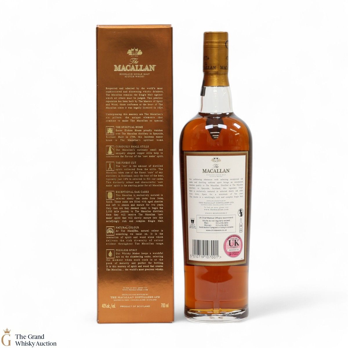 Distilled at the world-renowned Macallan Distillery in Speyside, this single malt was matured exclusively in sherry oak casks from Jerez, Spain. It was aged for a total of 10 years prior to bottling at a strength of 40% ABV.