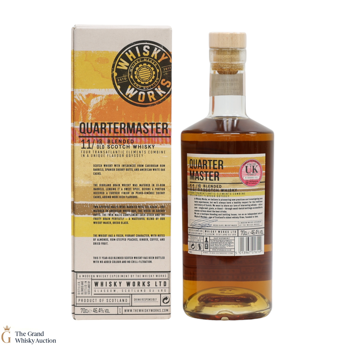 Whisky Works was established by Whisky Maker and Blender Gregg Glass in 2017. Highland Grain and Speyside Malts come together in a Blended expression with influences from Caribbean rum casks, Spanish Sherry butts and American White Oak barrels. Just 2,134 individually numbered bottles of this 11-year-old blend exist, each of which is non-chill filtered and has natural in colour.