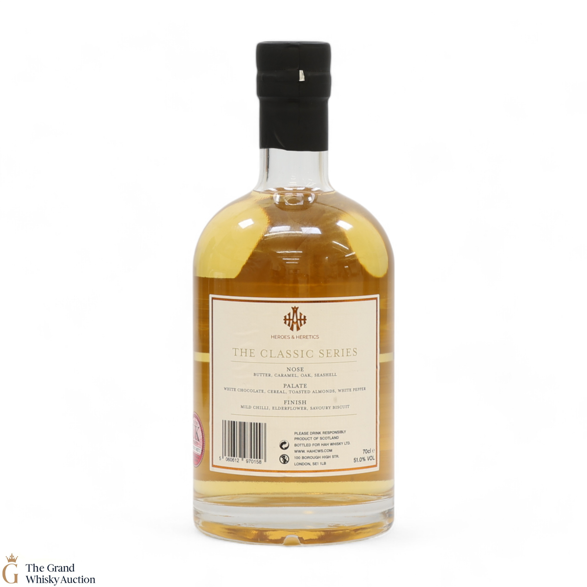 A small batch bottling from the Heroes & Heretics Distillery. This is one of 1527 bottles at 51% ABV.