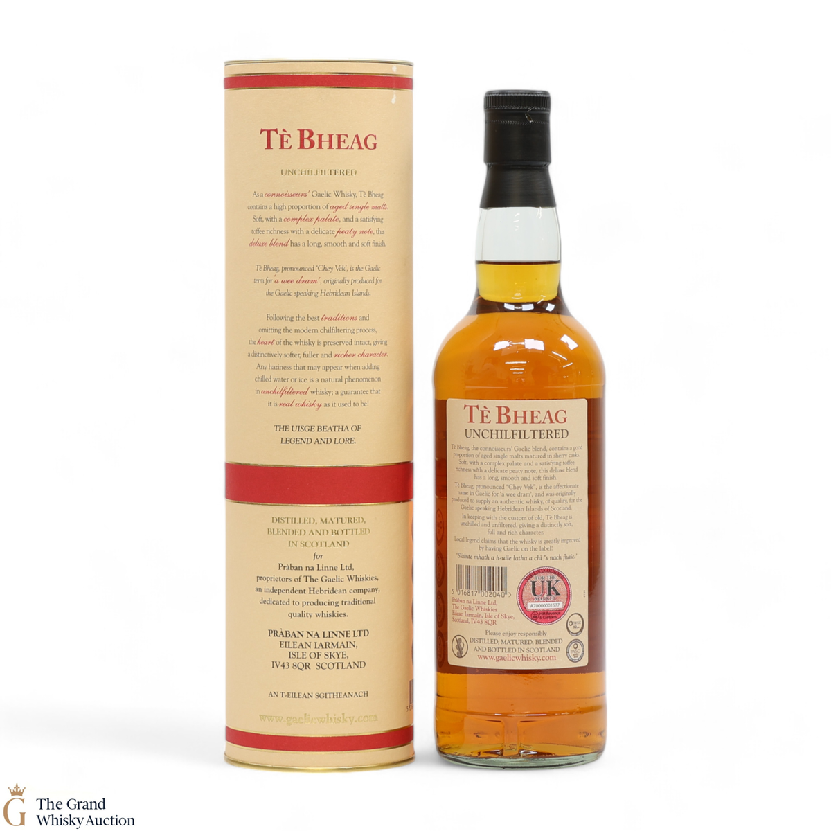 This brand has a great range of traditional Gaelic Whiskies. Tè Bheag; an exceptional connoisseurs’ blend that contains a high malt content aged in sherry casks.