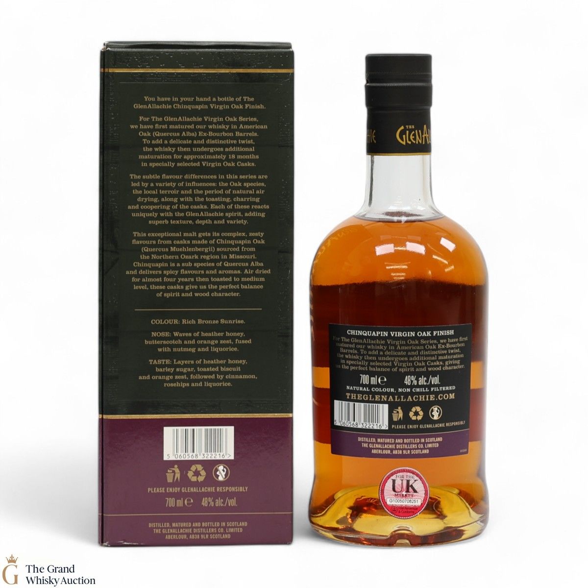 Part of GlenAllachie's Virgin Oak Series, this single malt was matured in Chinquapin Oak which had been sourced from Missouri, USA. The virgin oak was toasted to a medium level, giving the malt a complex and zesty flavour.