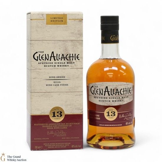 Distilled at the GlenAllachie Distillery, this single malt was matured for a total of 13 years, first maturing in an American Oak ex-bourbon barrel, then finished in a Rioja wine cask. Bottled at 48% ABV, this single malt is part of the limited edition GlenAllachie Wine Series.