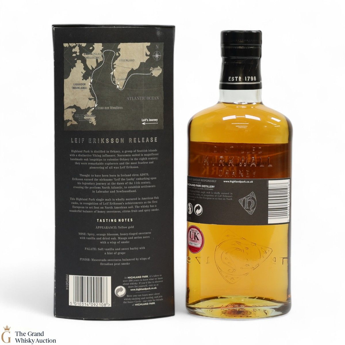 Launched in March 2010, for the travel retail market, Highland Park Leif Eriksson Limited Edition was released to celebrate the first European to reach America over a thousand years ago. The single malt was matured in American oak casks, both ex-bourbon and ex-sherry in recognition of Leif Eriksson, a pioneering Viking explorer, as the first European man to set foot on American soil.