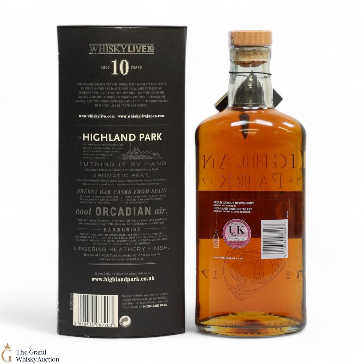 This is a limited edition 10-year-old Highland Park bottled to commemorate 10 years of Whisky Live. It was distilled in 1999, matured in sherry Oak casks, bottled in 2009 at the cask strength of 59.3%. This is a limited edition of only 600 bottles.