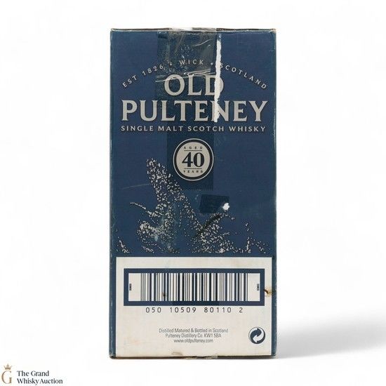 This is a very handsome 40-year-old from Old Pulteney indeed. This single malt was drawn from 3 sherry casks and a single bourbon barrel, that were all filled in 1968. The bottle is hand-blown and decorated with silver waves blown across the glass while the metal was molten. It is capped with a polished stone stopper and it comes in a striking presentation case.