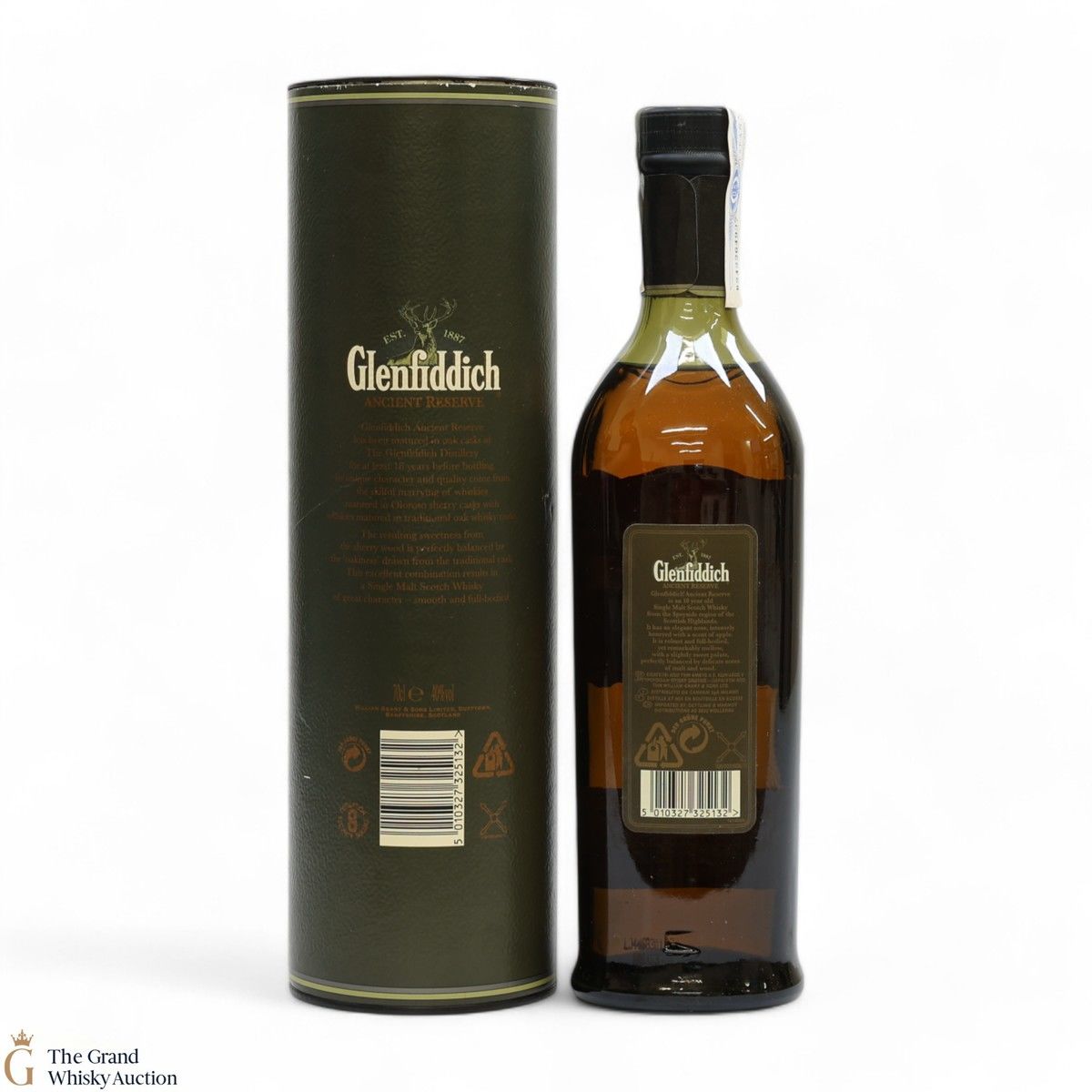 Glenfiddich's 18-year-old Ancient Reserve single malt whisky. This edition comes in the Glenfiddich livery rather than the decanters used in the early 1990s.