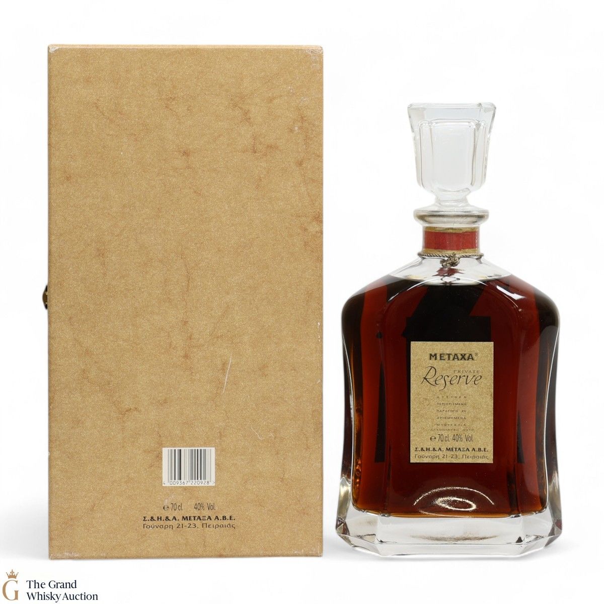 A 1990s bottling of Metaxa Private Reserve, made from Spyros Metaxas family casks. Aged for up to 30 years, this is a Greek brandy and each bottle is individually numbered.