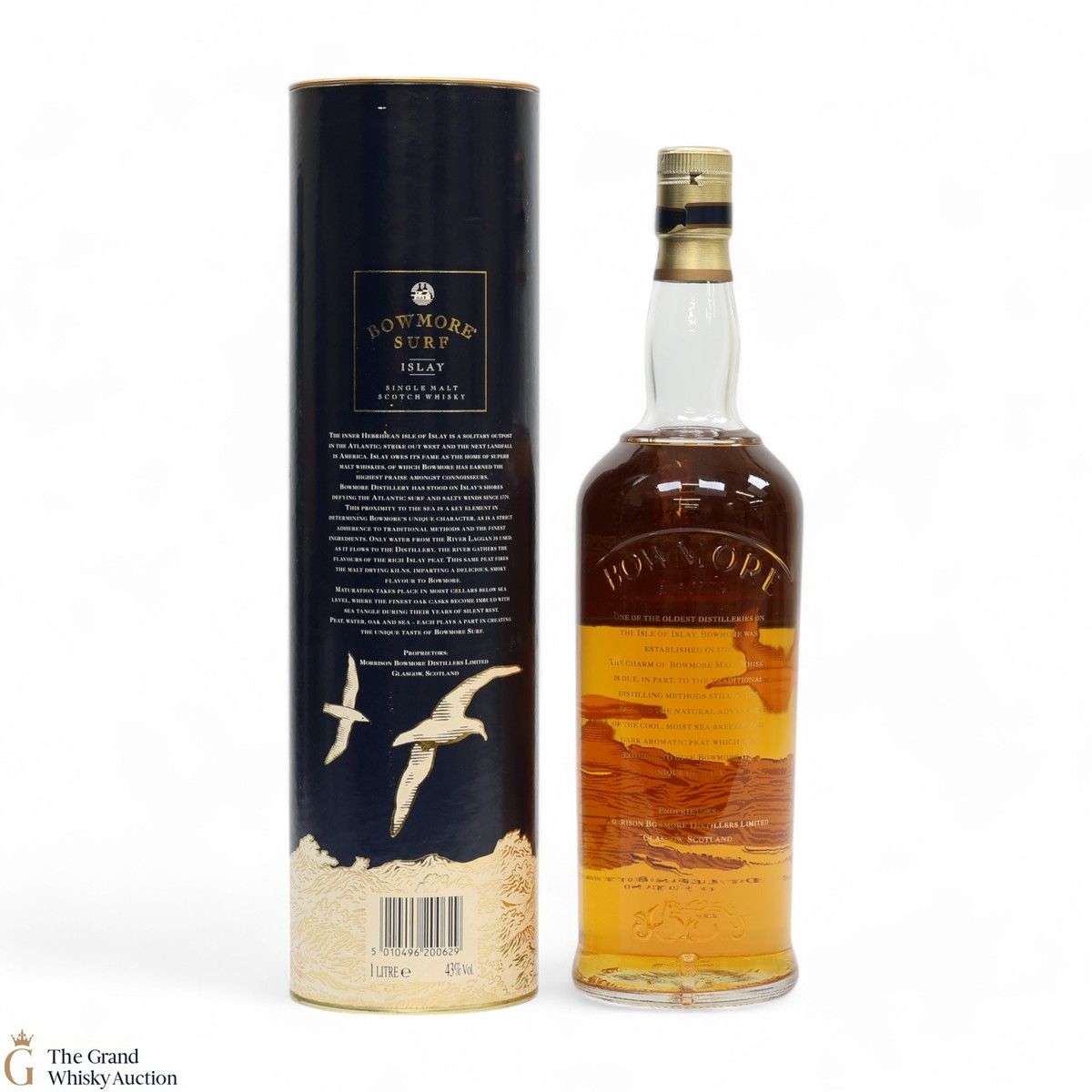 Bottles for the travel retail market, this Bowmore has a nose of sea spray and peat smoke. The Bowmore Distillery is the oldest established one on Islay. It was founded in 1779.