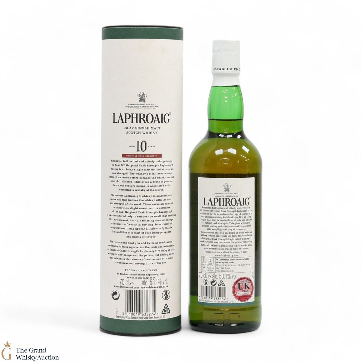 This bottling is from batch 009, original cask strength bottling of the medicinal 10-year-old from Islay's bestselling distillery, Laphroaig. In making Laphroaig, malted barley is dried over a peat fire. The smoke from this peat, found only on Islay, gives Laphroaig its particularly rich flavour. This release was bottled at 58.1% in February 2017.