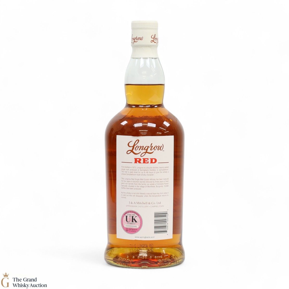 Springbank Longrow Red, is always bottled at cask strength, is released annually in small quantities and every year a different type of red wine cask is used to mature the whisky.