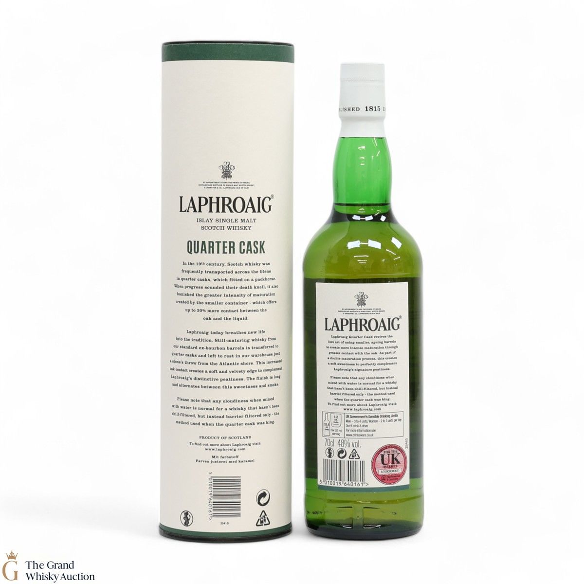 A younger, lively Laphroaig that has had the maturation process speeded up by ageing in quarter casks. As the size of the cask is smaller the maturation doesn't need to be as long. This process has created a soft sweetness and a velvety feel when first tasted, and then the intense peatiness so unique to Laphroaig comes bursting through.