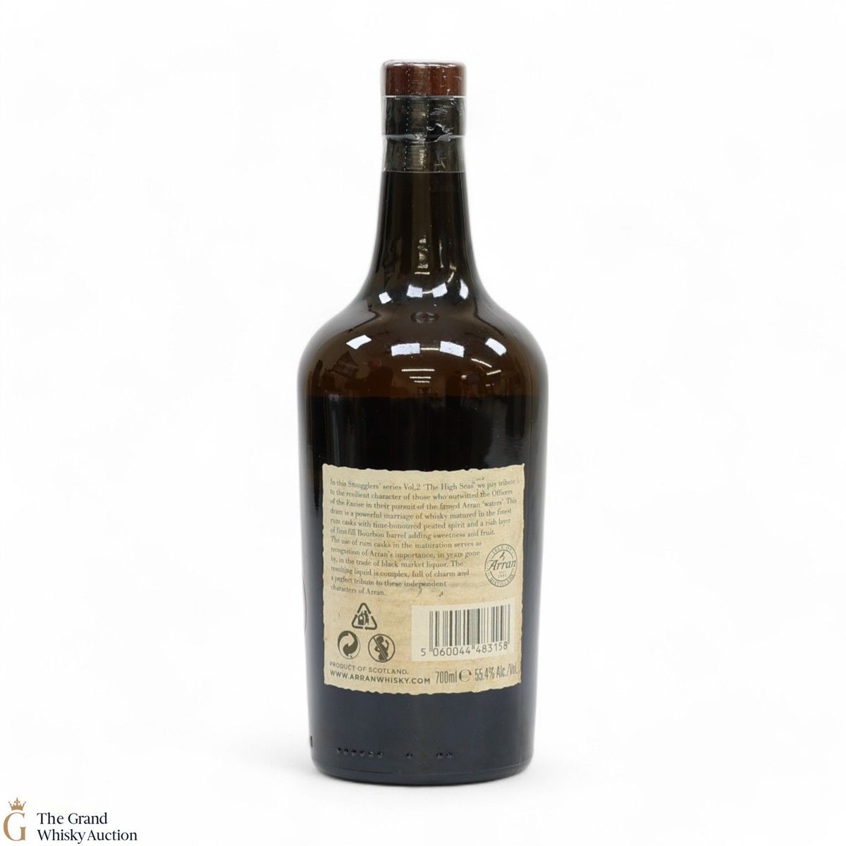 Due to the various ages of bottles and their seals, the condition of liquid is at the buyer's discretion and no claim can be lodged against failure/leakage in transit. Loss and breakage cover is available at 3% of the hammer price as standard. If the lot is not insured, no claim can be lodged against the courier or The Grand Whisky Auction for breakage or loss in transit.