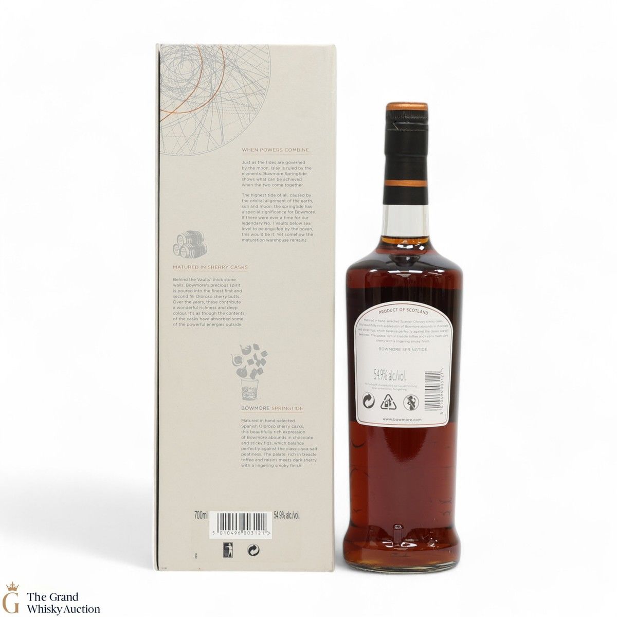 Distilled at Bowmore Distillery, this single malt was matured in hand-selected Spanish Oloroso sherry casks. Named 'Springtide', this is when the Earth, Sun and Moon are all aligned, which causes the highest tide of all.