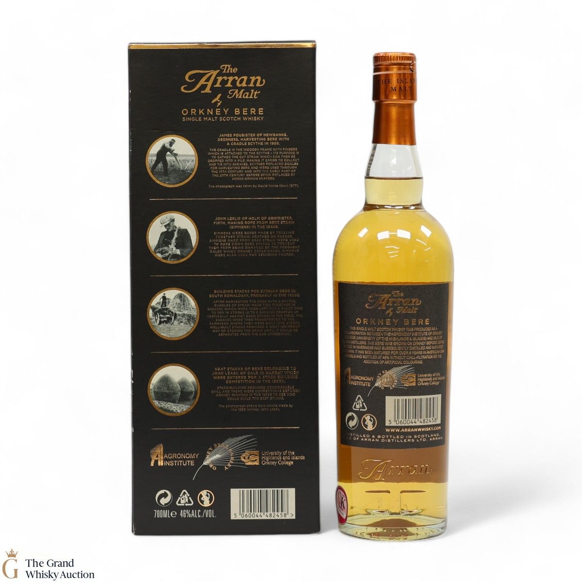 The Arran Orkney Bere is made from Scotland's oldest cultivated barley which was commonly used for the making of whisky until the middle of the 19th century. This was because it is well suited to the short growing period of Northern Scotland. This Bere was grown on the island of Orkney then malted at Inverness before being distilled on the Isle of Arran. Island grown, Island distilled.