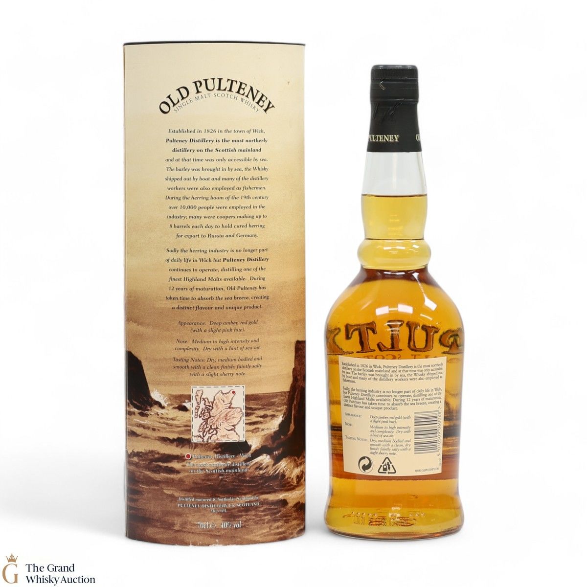 Old Pulteney is known as the Maritime Malt due to the distillery's location in the very North of Scotland and this is honoured with the unique shape of the bottle.
