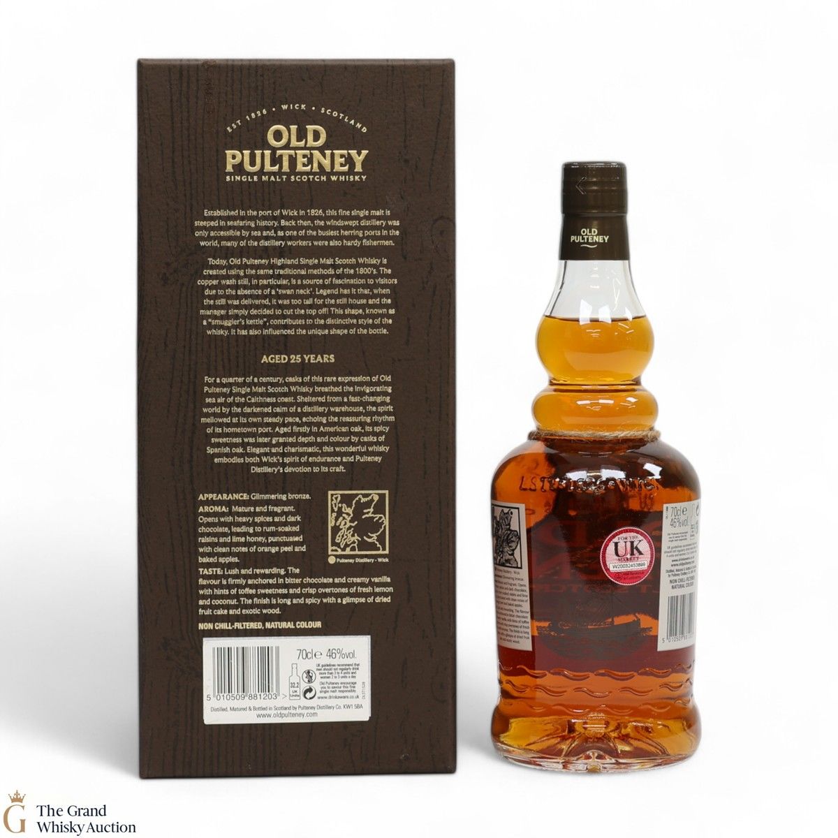Due to the various ages of bottles and their seals, the condition of liquid is at the buyer's discretion and no claim can be lodged against failure/leakage in transit. Loss and breakage cover is available at 3% of the hammer price as standard. If the lot is not insured, no claim can be lodged against the courier or The Grand Whisky Auction for breakage or loss in transit.