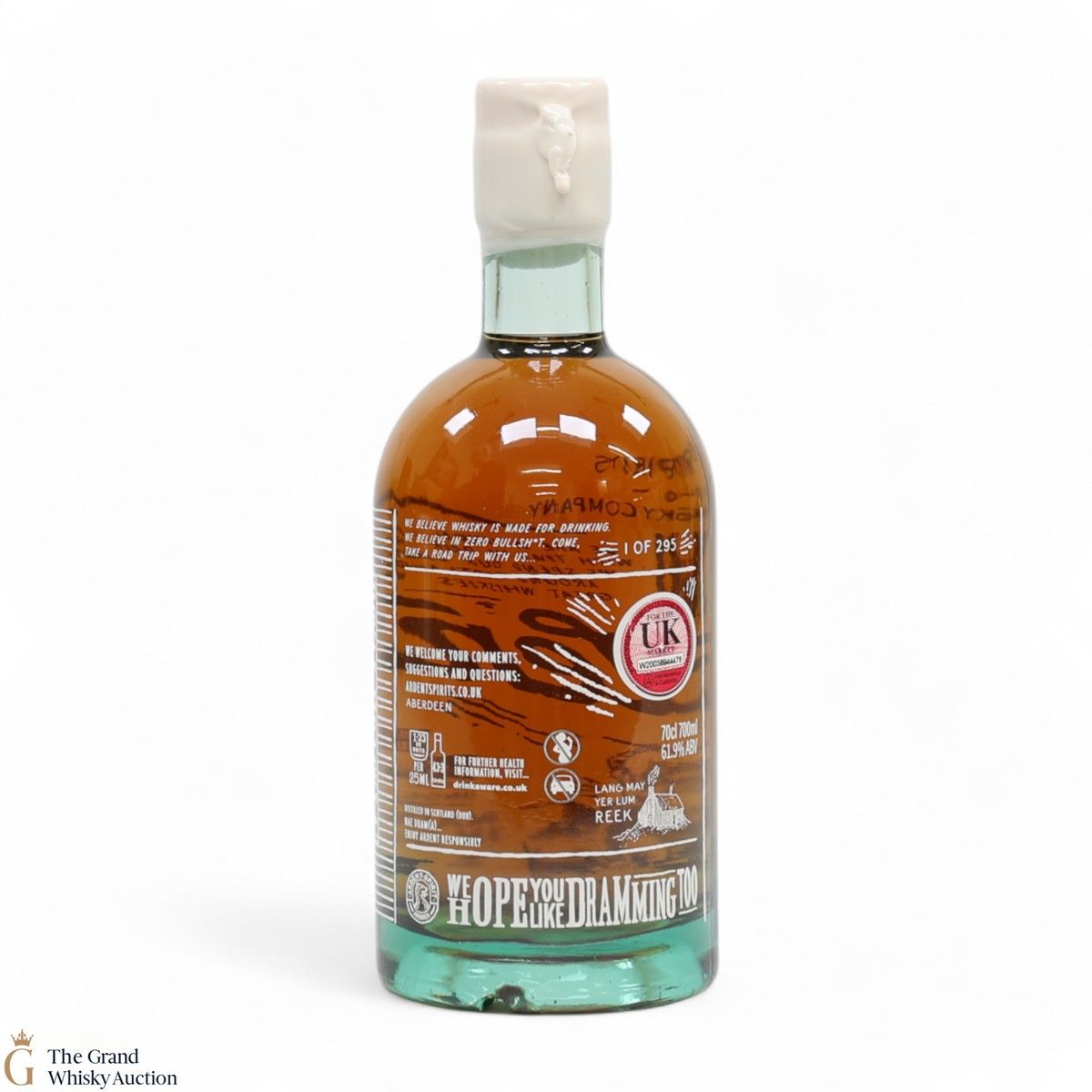 Due to the various ages of bottles and their seals, the condition of liquid is at the buyer's discretion and no claim can be lodged against failure/leakage in transit. Loss and breakage cover is available at 3% of the hammer price as standard. If the lot is not insured, no claim can be lodged against the courier or The Grand Whisky Auction for breakage or loss in transit.