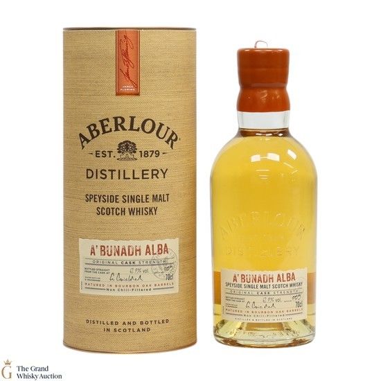 Distilled at the Aberlour Distillery, this single malt was matured in bourbon oak barrels until being bottled at the cask strength of 62.7% ABV. This is batch 5 of the A'Bunadh Alba.