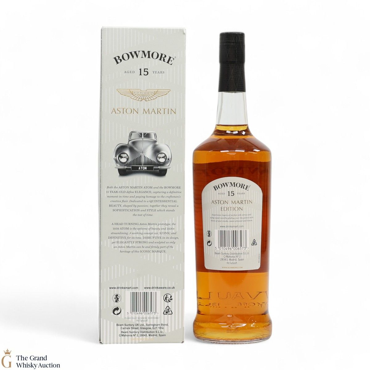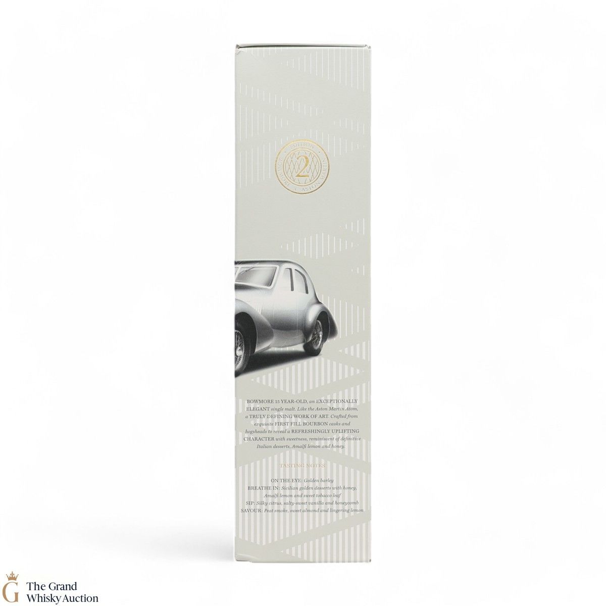 Edition 2 of the Bowmore x Aston Martin collaboration celebrates the iconic Aston Martin 1939 Atom. A working concept car, iconic and definitive for its time. A great pairing for the golden and elegant 15 Year Old, married in 1st fill bourbon casks to create a refreshing, silky peat-smoked character with notes of citrus. Bottled at 43% ABV.