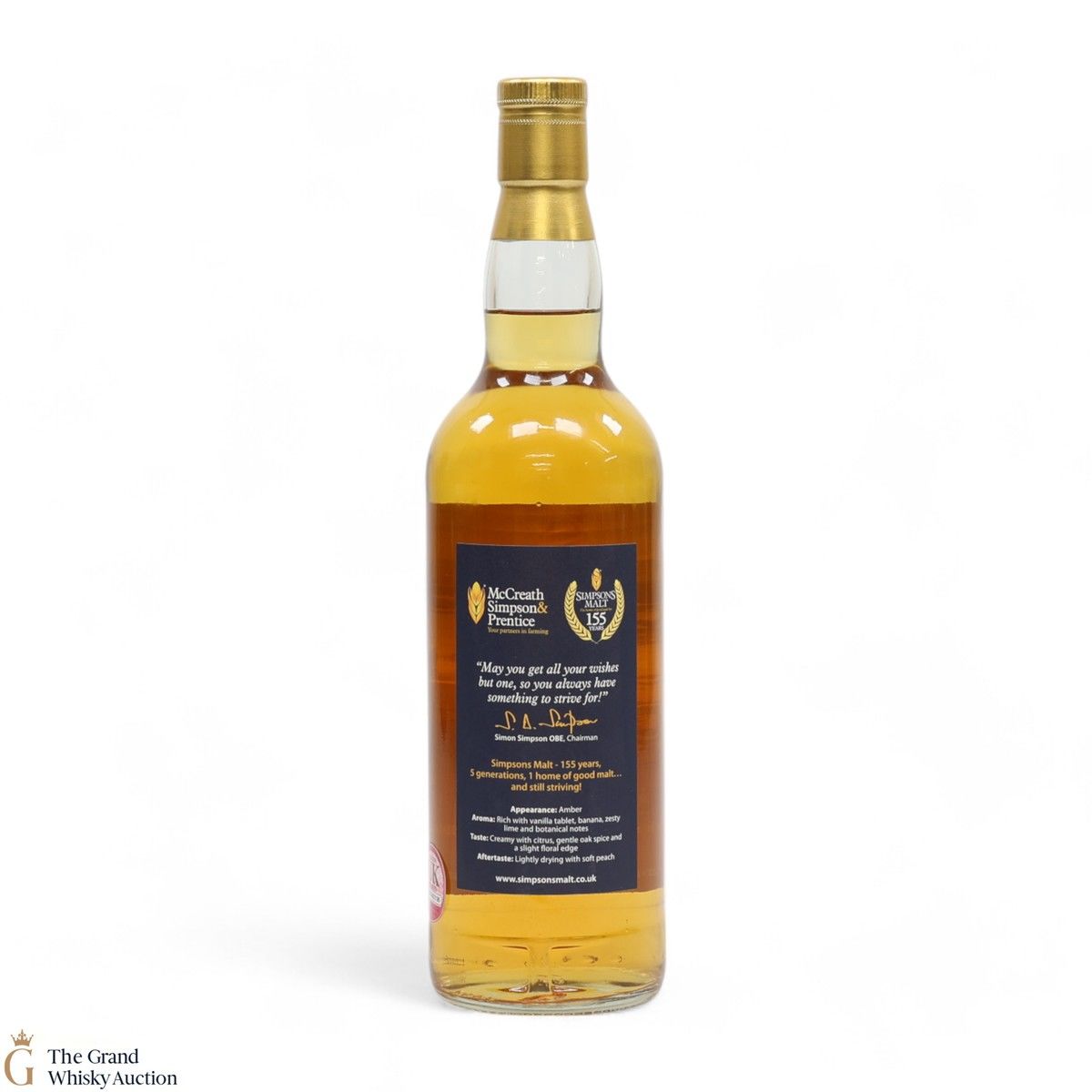 This whisky was distilled at an undisclosed distillery and specially selected by Simpson's Malt, suppliers of malted barley to the beer and Scotch whisky industries, to commemorate the company's 155th anniversary.