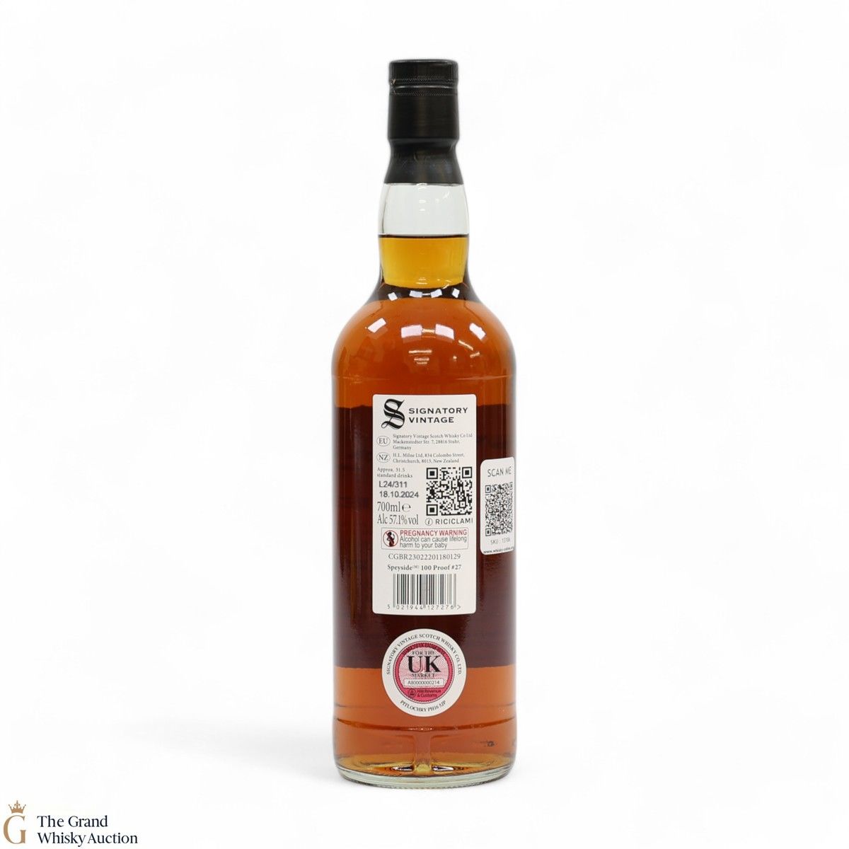 Due to the various ages of bottles and their seals, the condition of liquid is at the buyer's discretion and no claim can be lodged against failure/leakage in transit. Loss and breakage cover is available at 3% of the hammer price as standard. If the lot is not insured, no claim can be lodged against the courier or The Grand Whisky Auction for breakage or loss in transit.