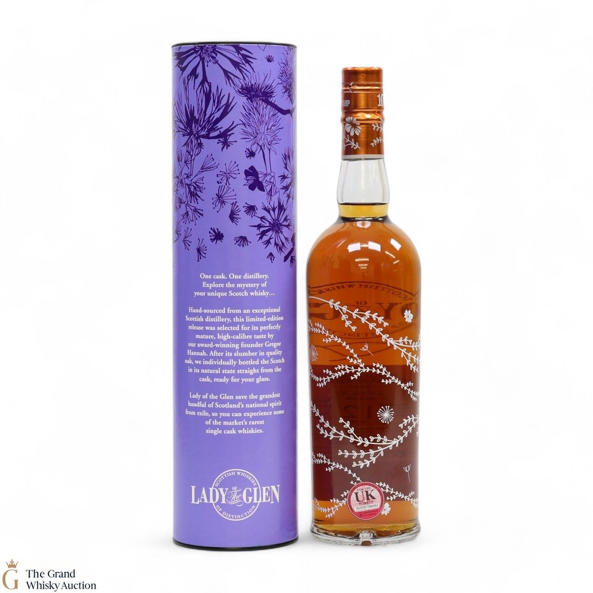 Lady of the Glen bottlings are hand-sourced from an exceptional Scottish distillery. These limited edition released are selected or its perfectly mature, high-calibre taste by the award-winning founder Gregor Hannah. After the slumber in quality oak, the single malts are individually bottles straight from the cask.
