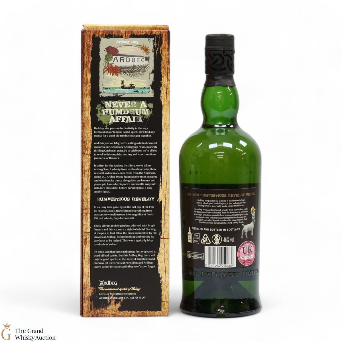 This is the 2019 Ardbeg Drum Limited edition. The Ardbeg Drum is a non-age-statement single malt matured in ex-Bourbon casks and then finished in ex-rum casks from the Americas. It was created to celebrate Ardbeg Day 2019 (June 1) held during the Islay Festival of Music & Malt (Fèis Ìle).