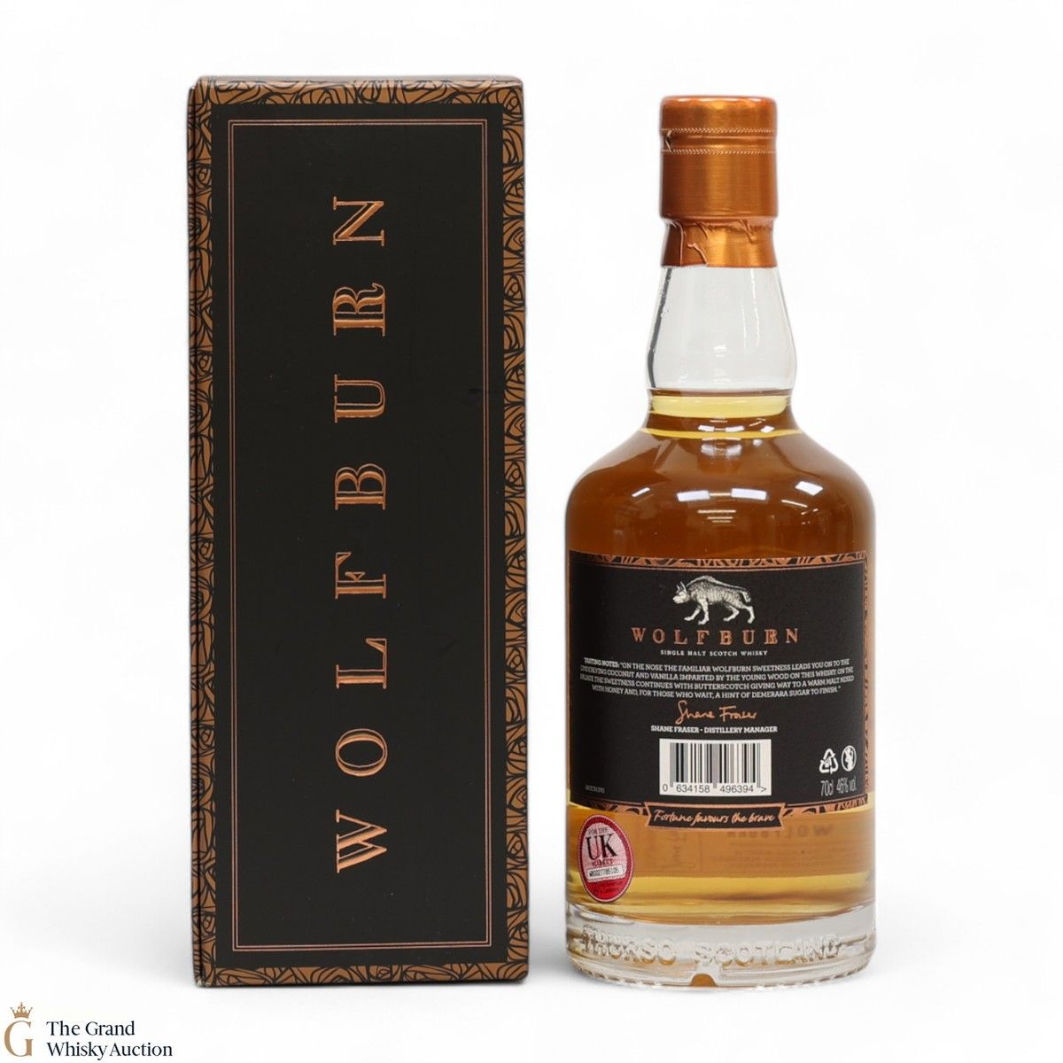 Due to the various ages of bottles and their seals, the condition of liquid is at the buyer's discretion and no claim can be lodged against failure/leakage in transit. Loss and breakage cover is available at 3% of the hammer price as standard. If the lot is not insured, no claim can be lodged against the courier or The Grand Whisky Auction for breakage or loss in transit.