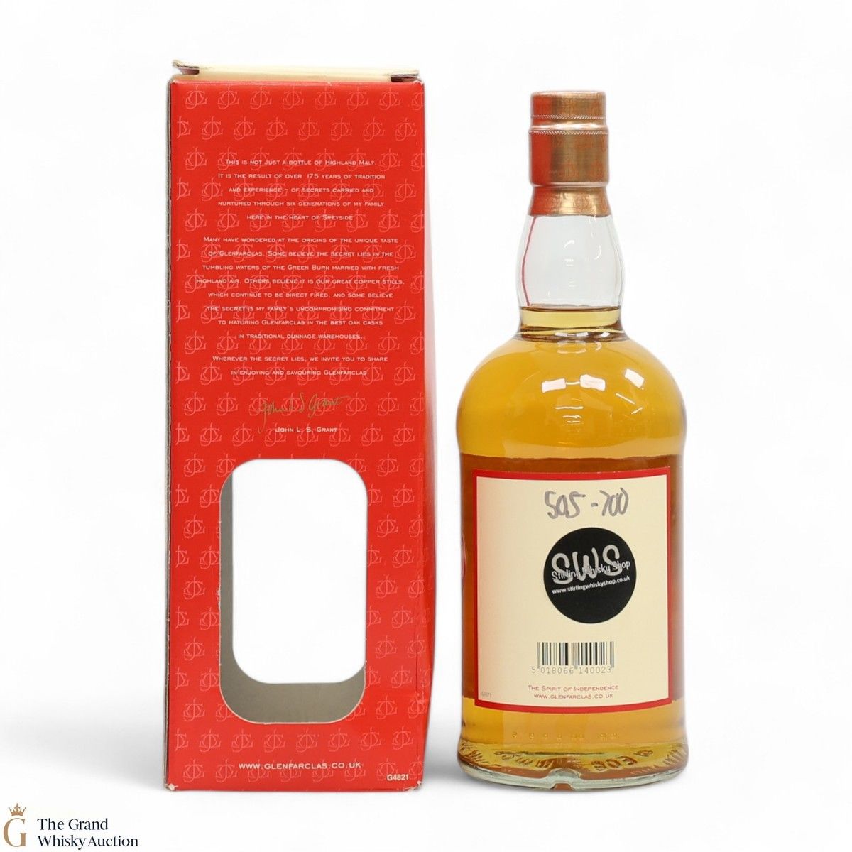 Due to the various ages of bottles and their seals, the condition of liquid is at the buyer's discretion and no claim can be lodged against failure/leakage in transit. Loss and breakage cover is available at 3% of the hammer price as standard. If the lot is not insured, no claim can be lodged against the courier or The Grand Whisky Auction for breakage or loss in transit.