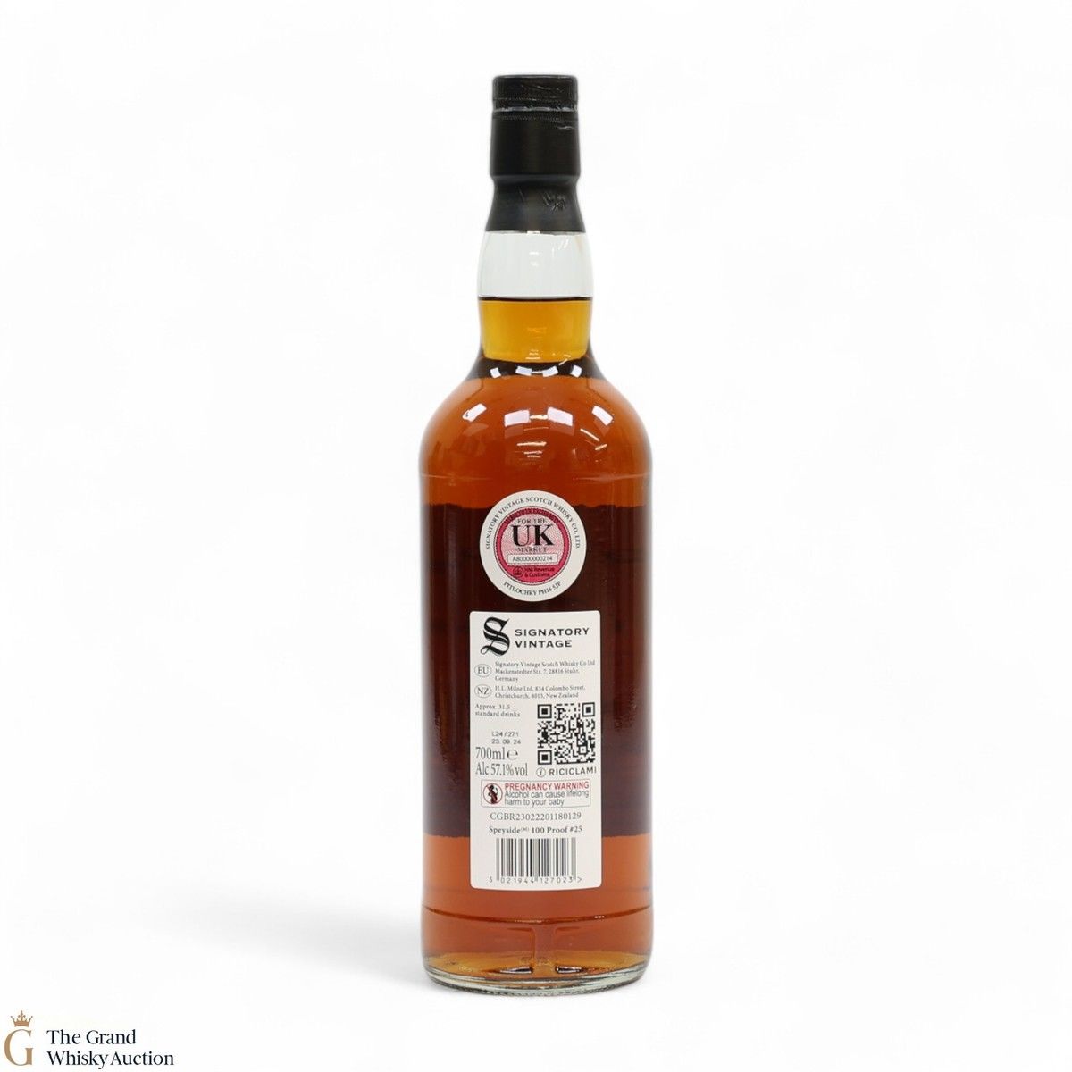 Due to the various ages of bottles and their seals, the condition of liquid is at the buyer's discretion and no claim can be lodged against failure/leakage in transit. Loss and breakage cover is available at 3% of the hammer price as standard. If the lot is not insured, no claim can be lodged against the courier or The Grand Whisky Auction for breakage or loss in transit.