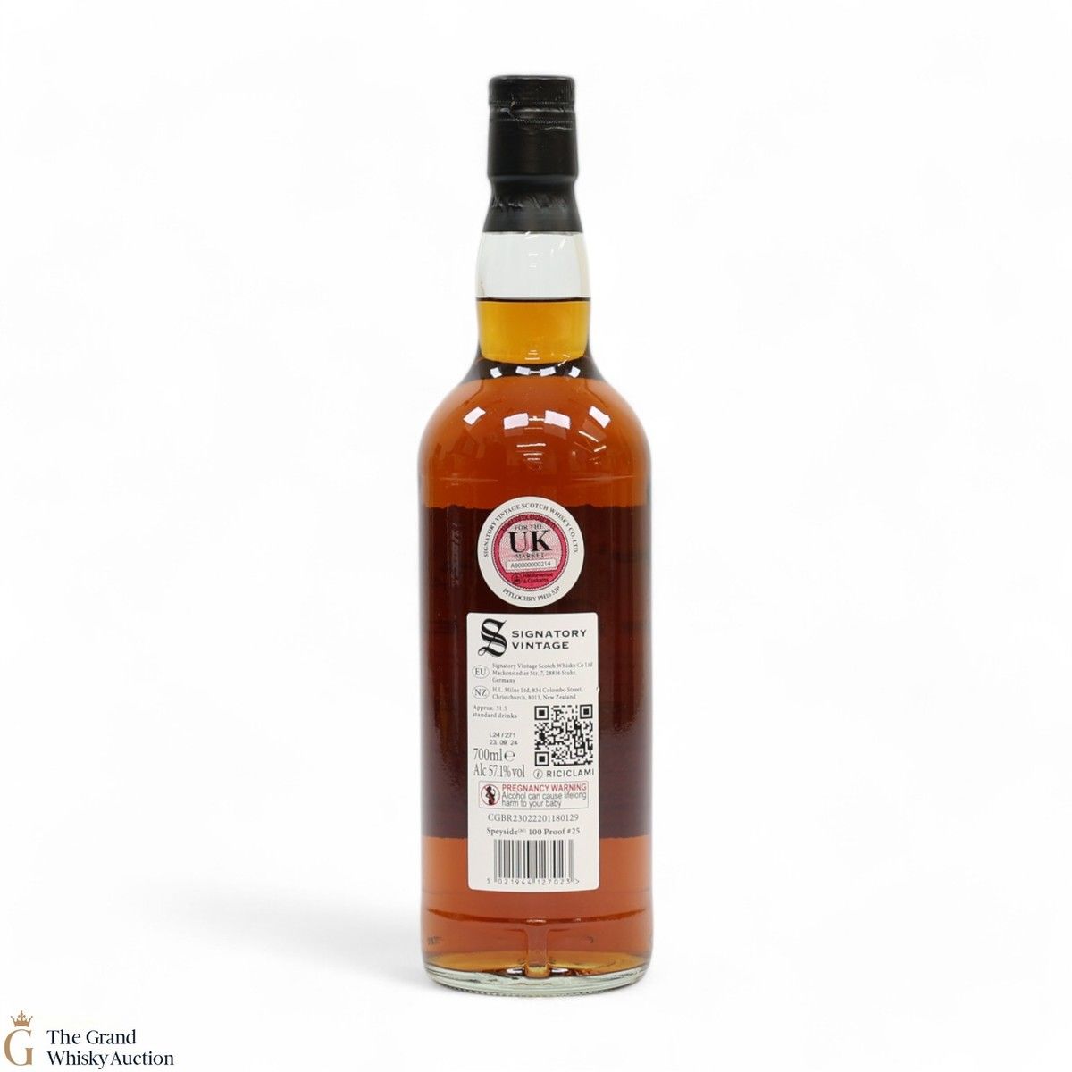 Due to the various ages of bottles and their seals, the condition of liquid is at the buyer's discretion and no claim can be lodged against failure/leakage in transit. Loss and breakage cover is available at 3% of the hammer price as standard. If the lot is not insured, no claim can be lodged against the courier or The Grand Whisky Auction for breakage or loss in transit.
