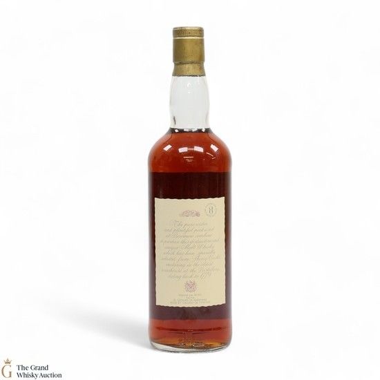 Due to the various ages of bottles and their seals, the condition of liquid is at the buyer's discretion and no claim can be lodged against failure/leakage in transit. Loss and breakage cover is available at 3% of the hammer price as standard. If the lot is not insured, no claim can be lodged against the courier or The Grand Whisky Auction for breakage or loss in transit.