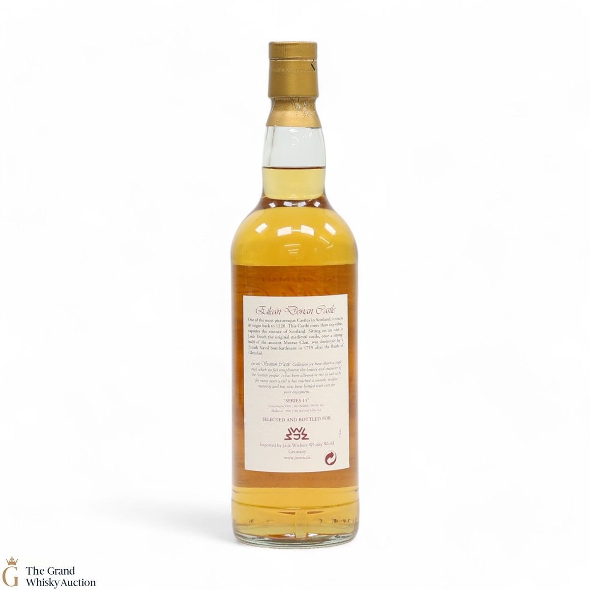Due to the various ages of bottles and their seals, the condition of liquid is at the buyer's discretion and no claim can be lodged against failure/leakage in transit. Loss and breakage cover is available at 3% of the hammer price as standard. If the lot is not insured, no claim can be lodged against the courier or The Grand Whisky Auction for breakage or loss in transit.
