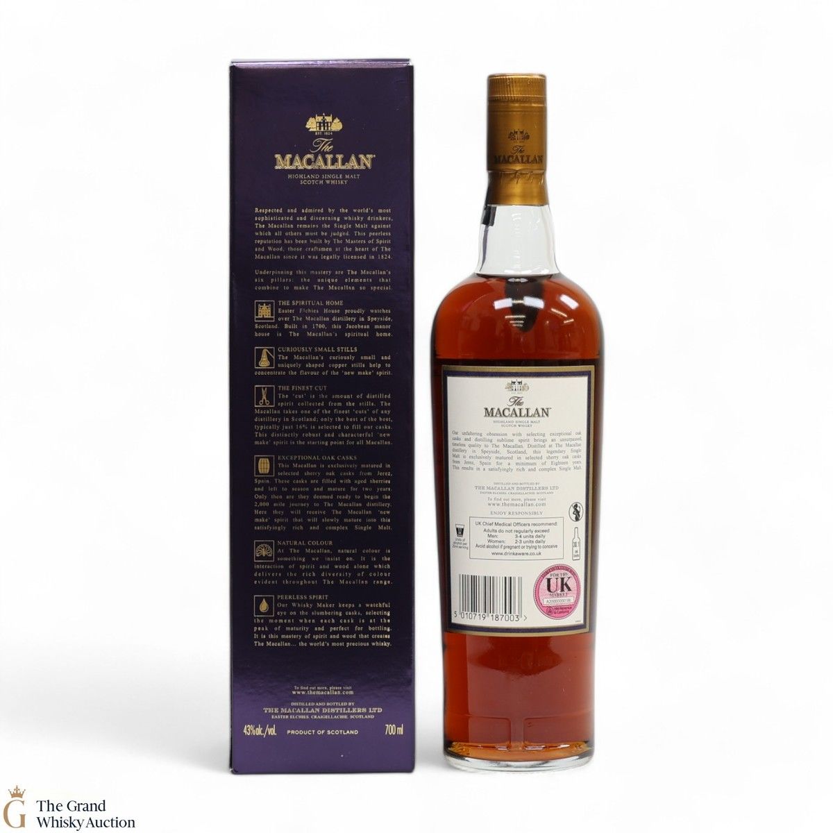 Due to the various ages of bottles and their seals, the condition of liquid is at the buyer's discretion and no claim can be lodged against failure/leakage in transit. Loss and breakage cover is available at 3% of the hammer price as standard. If the lot is not insured, no claim can be lodged against the courier or The Grand Whisky Auction for breakage or loss in transit.