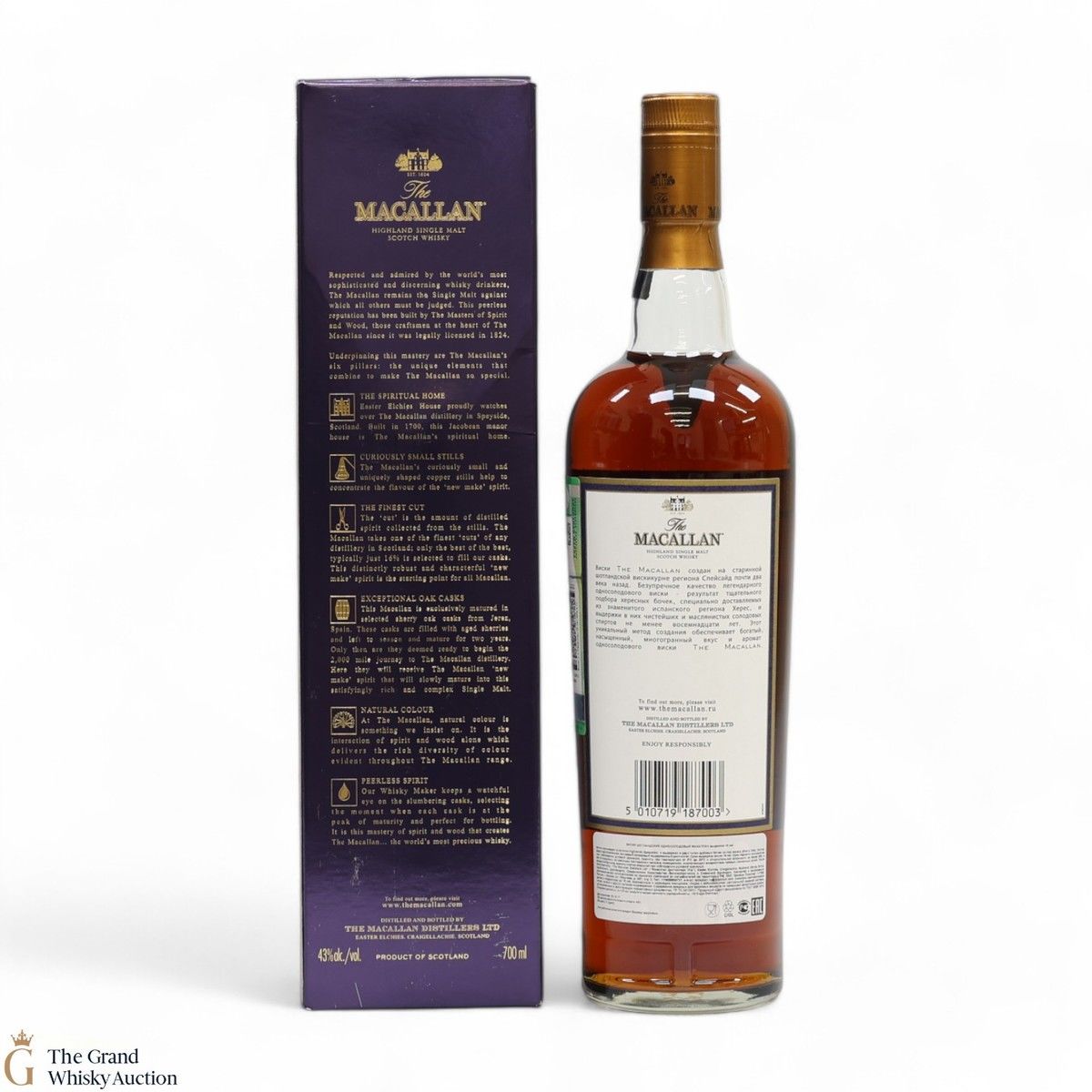 This annual release of The Macallan's popular 18 Year Old Sherry Oak is matured exclusively in sherry seasoned casks, built from both Spanish and American oak, providing a beautifully dark flavour with rich aromas.