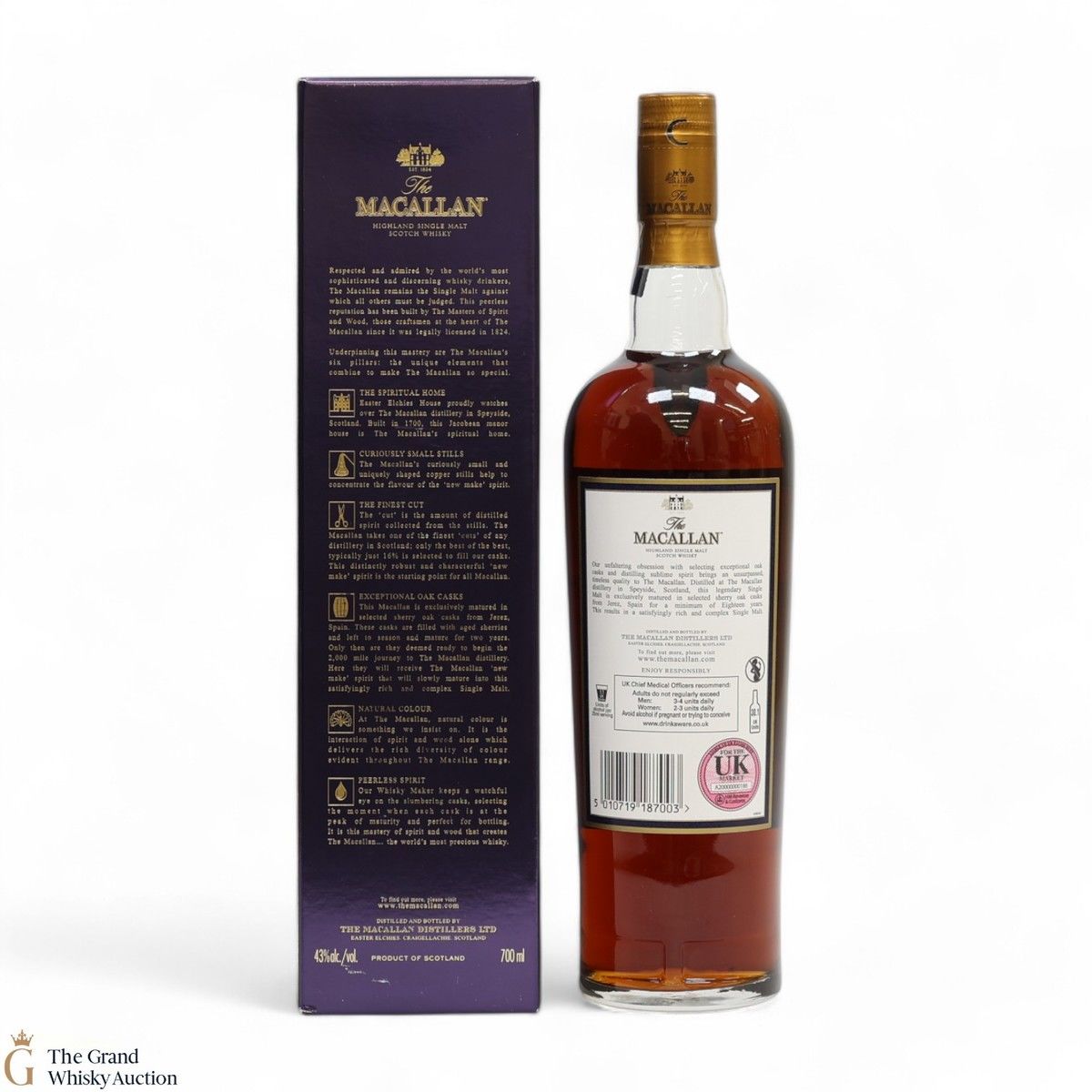This annual release of The Macallan's popular 18 Year Old Sherry Oak is matured exclusively in sherry seasoned casks, built from both Spanish and American oak, providing a beautifully dark flavour with rich aromas.
