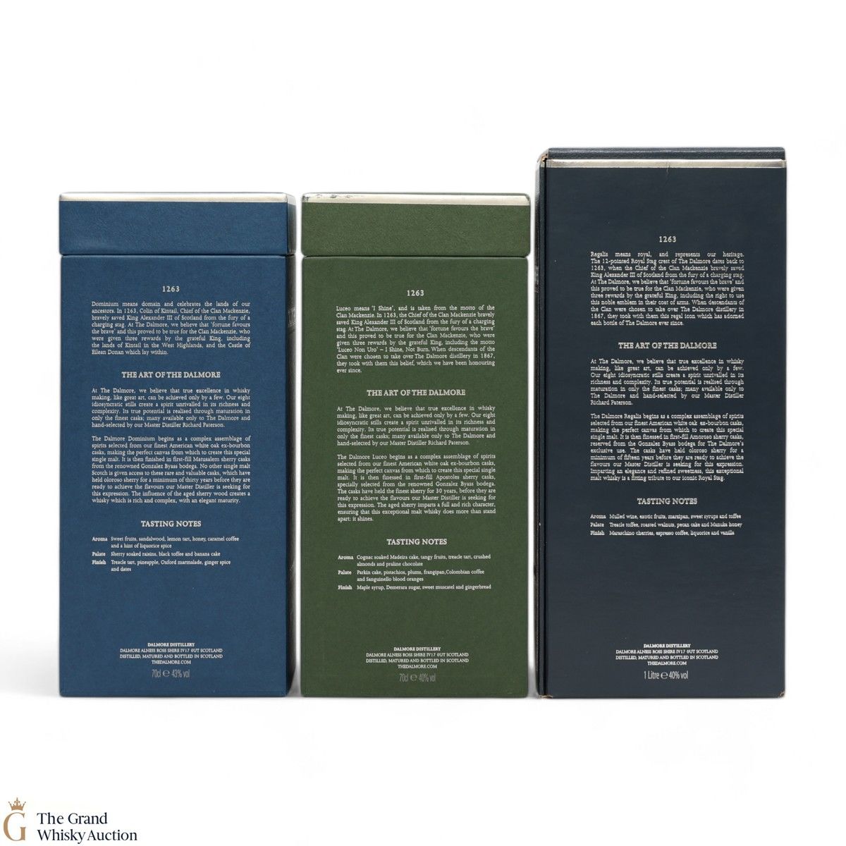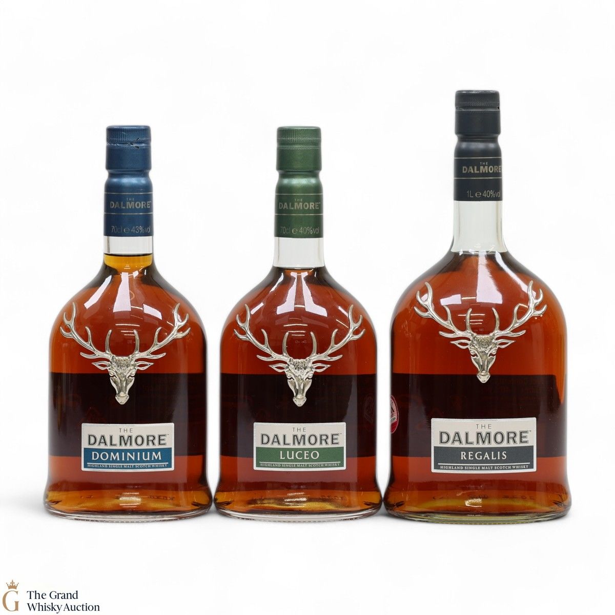 Dalmore Dominium Released exclusively for the world travel retail market this Highland Malt from Dalmore distillery been finished in first-fill Matusalem sherry casks. Dalmore is known as the feather in the cap of the Whyte and Mackay portfolio. Dominium means domain and celebrates the lands of ancestors. 43% ABV 70cl