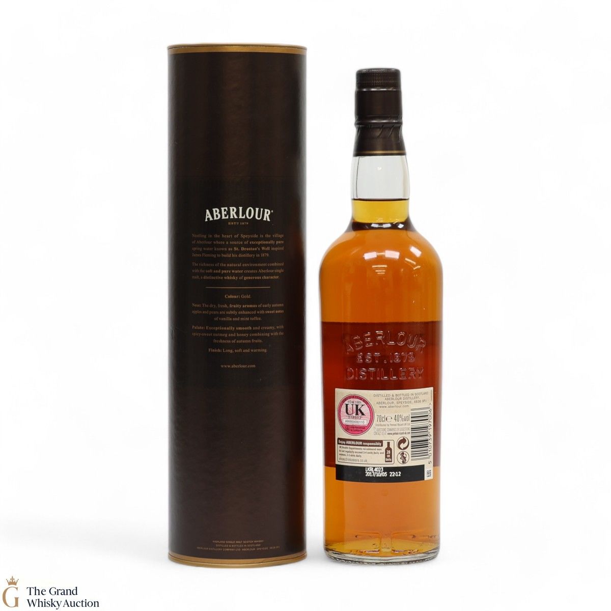 Due to the various ages of bottles and their seals, the condition of liquid is at the buyer's discretion and no claim can be lodged against failure/leakage in transit. Loss and breakage cover is available at 3% of the hammer price as standard. If the lot is not insured, no claim can be lodged against the courier or The Grand Whisky Auction for breakage or loss in transit.