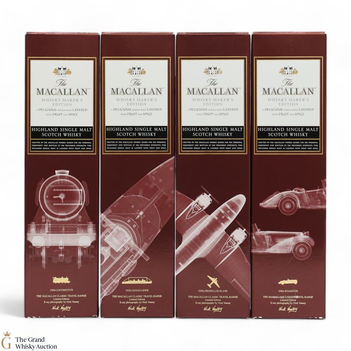 The range includes a set of 4 different bottle labels and outer boxes, with x-ray photography celebrating the art of travel, designed by Nick Veasey.