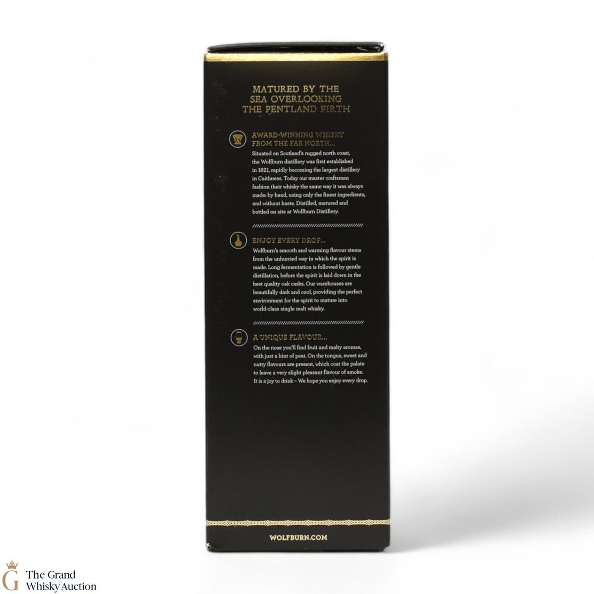 This Wolfburn Single Malt is a 3 year old whisky that has been matured in ex-peated quarter casks from Islay and is a gently peated whisky. The inaugural whisky was launched globally in March 2016 and has won three gold medal awards in international competitions.