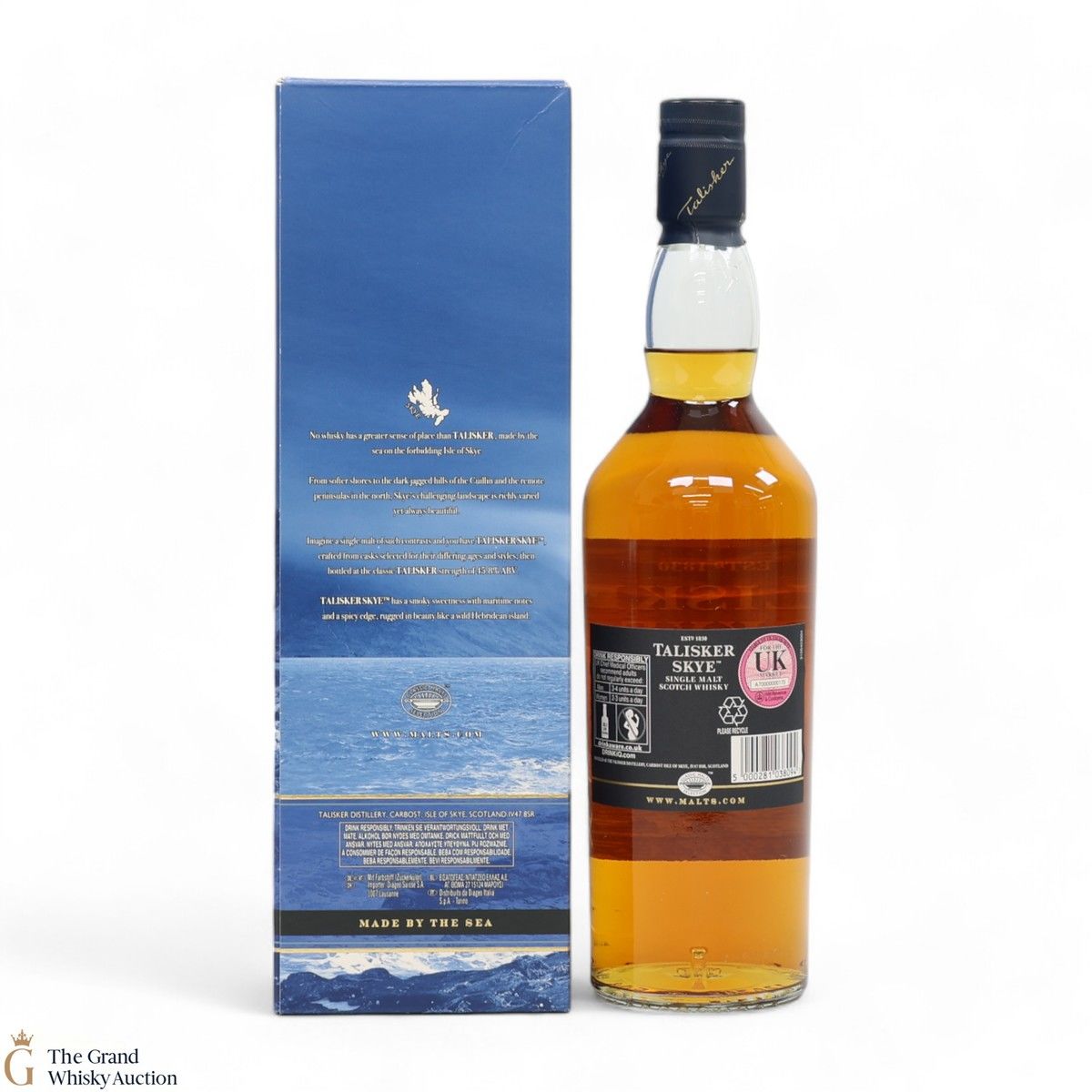 Talisker Skye was introduced in early 2015, named after the beautiful island on which the distillery resides. It has been matured in a combination of refill and toasted American oak casks, with a slightly higher proportion of toasted casks.