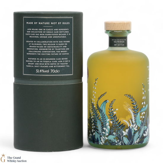 This is the first of their single cask releases, exclusively for Selfridges. 'Aon' means one in Gaelic and is the name of the Nc'Nean single cask releases. Created in collaboration with Selfridges, based on their shared values of sustainability and innovation. Matured in an ex-bourbon cask before moving into an ex-tequila cask. Bottled at 51.4%.