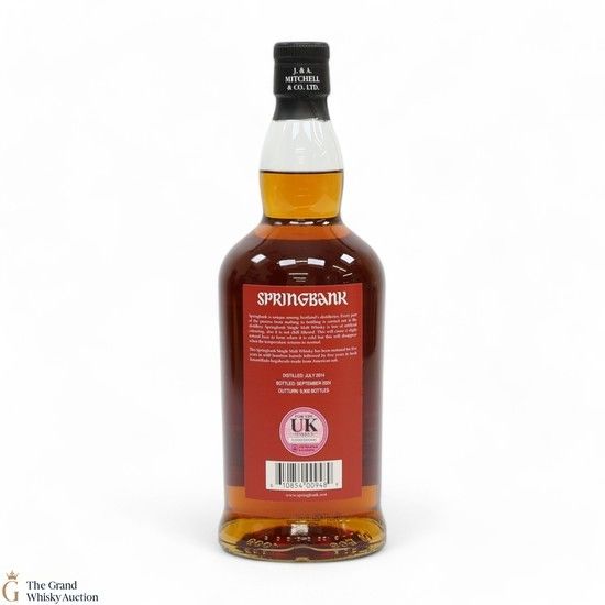 This Springbank Single Malt Whisky was distilled in July 2014 and has been matured for five years in refill bourbon barrels followed by four years in fresh amontillado hogsheads made from American oak. It was then bottled in September 2024 at a strength of 55% ABV with an outturn of 9,900 bottles.
