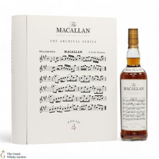 The fourth edition in the Archival Series from The Macallan. Folio 4 remembers the legendary advertising campaigns of the 1970s, 1980s and 1990s that brought The Macallan to the public’s attention outside of Scotland. It is presented in a beautiful book shaped, tin case. It features an advertisement including a Strathspey composed by James Scott Skinner (1843-1927). The advert notes that Skinner was so moved by his favourite malt he created a unique piece of music featuring his signature lilting notes with the simple catchphrase: “The Macallan. The Malt.”