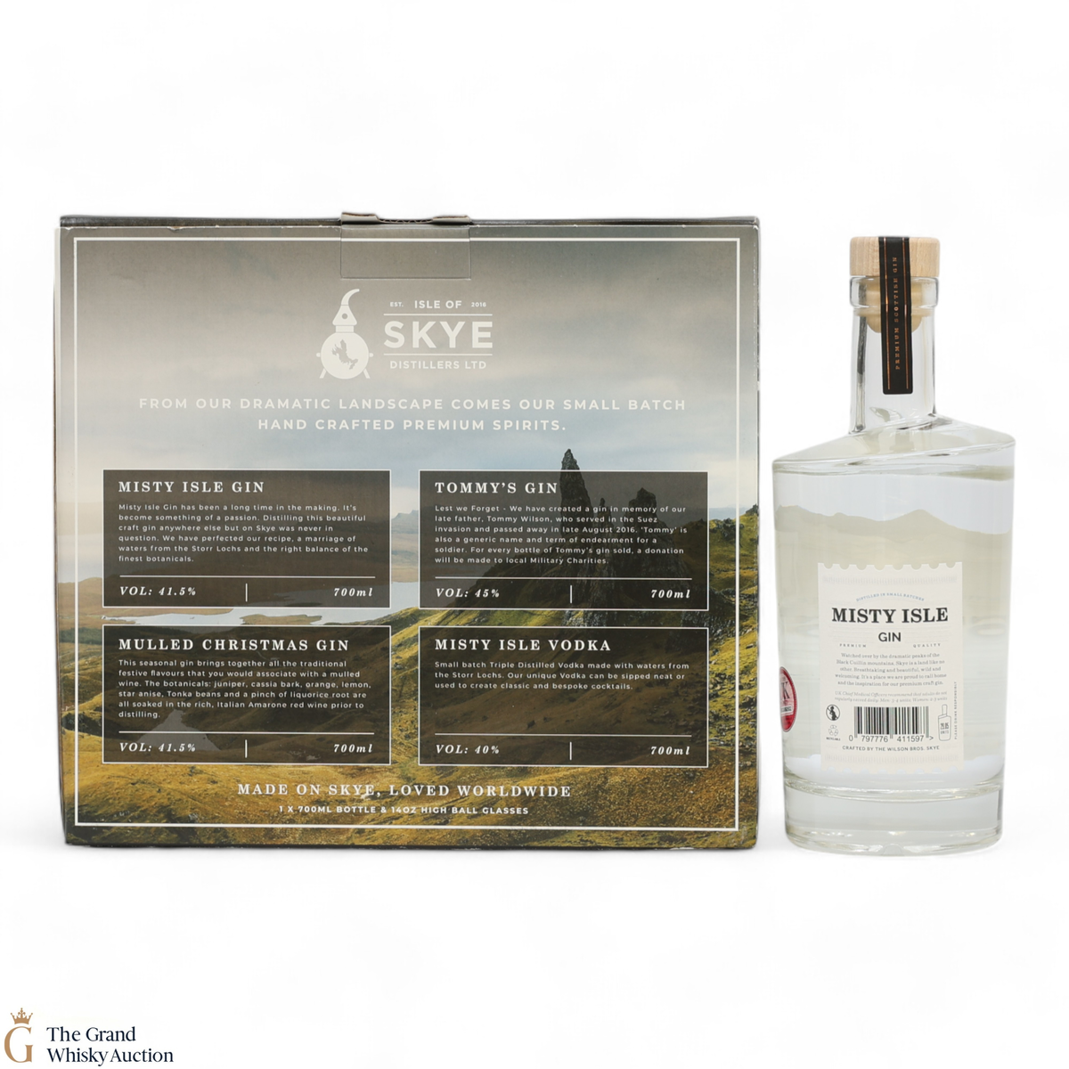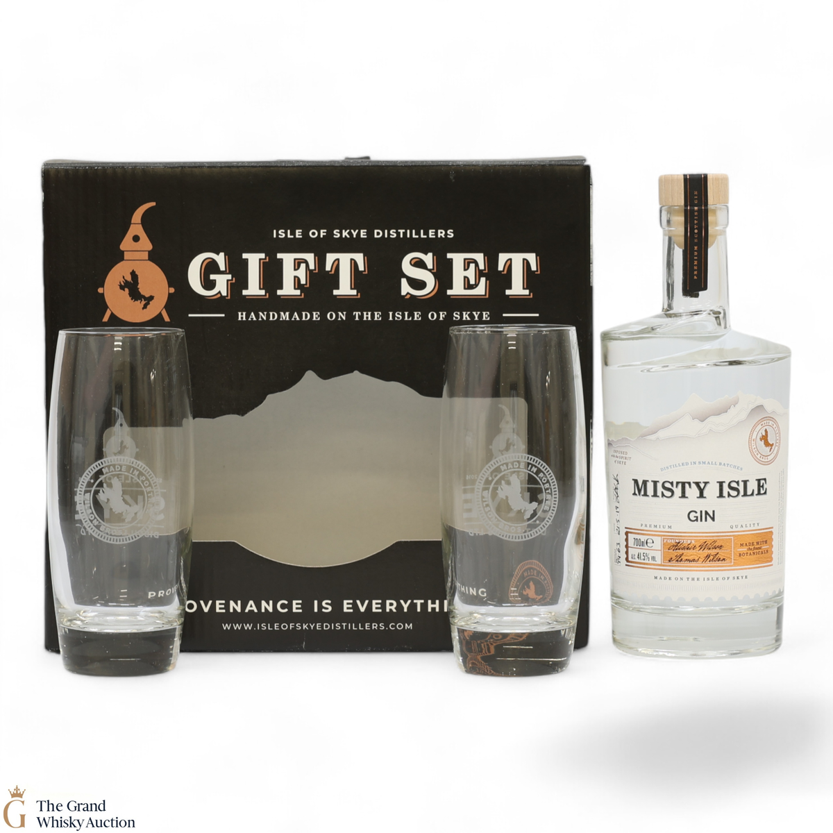 Misty Isle - Premium Gin Gift Set (x1 Bottle & 2x High Ball Glasses)