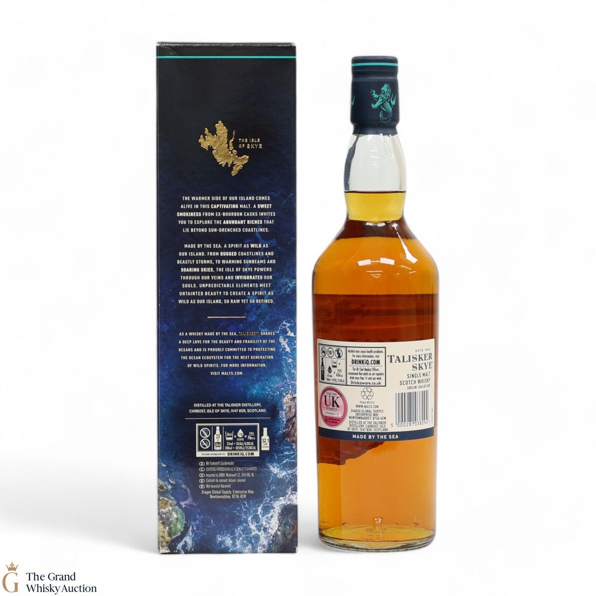 Talisker Skye was introduced in early 2015, named after the beautiful island on which the distillery resides. It has been matured in a combination of refill and toasted American oak casks, with a slightly higher proportion of toasted casks.